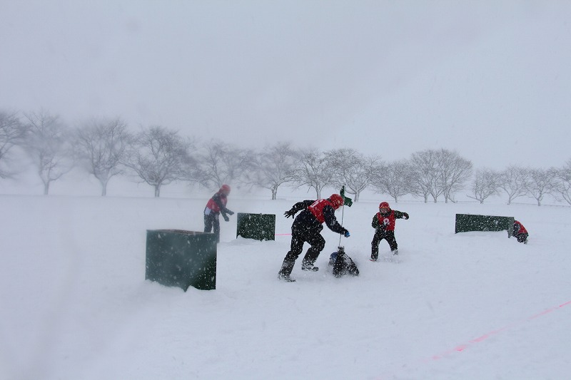 一般の部5チーム、少年の部3チームが吹雪の中、熱戦を繰り広げました。