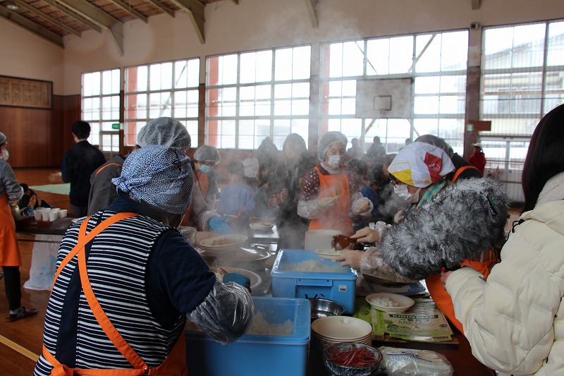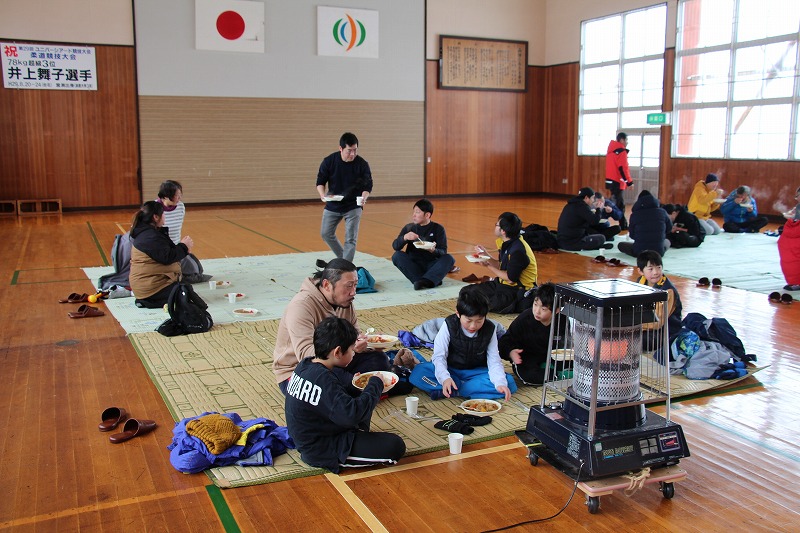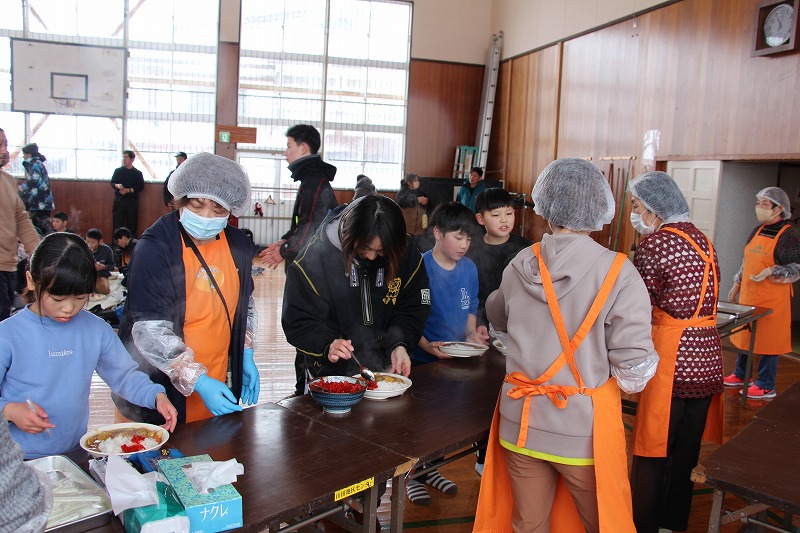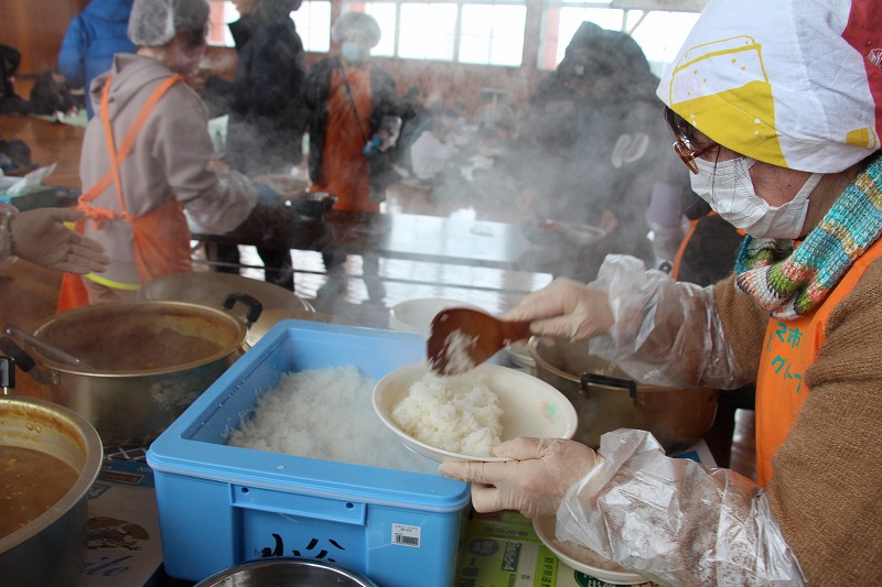 交流会終了後は、山田婦人会の方々がカレーライスで選手をねぎらいました。